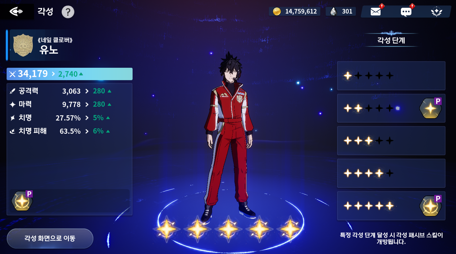각성도 고유마도사 피스 및 만능마도사 피스로만 가능합니다. 각성은 2단계 및 5단계에서 고유 각성 패시브 스킬을 받게 되고, 각성마다 추가 스텟을 받아 강해질 수 있습니다.